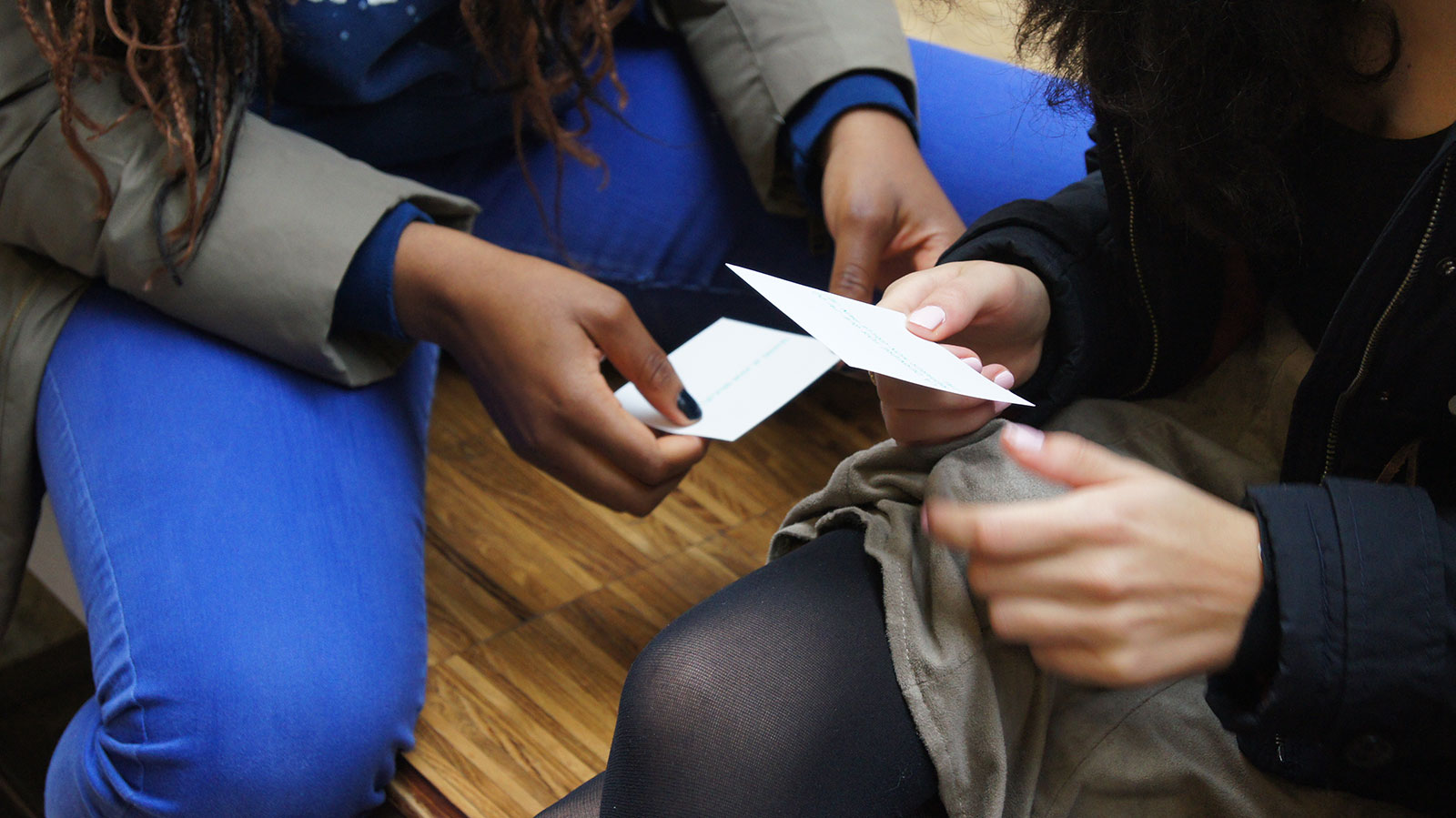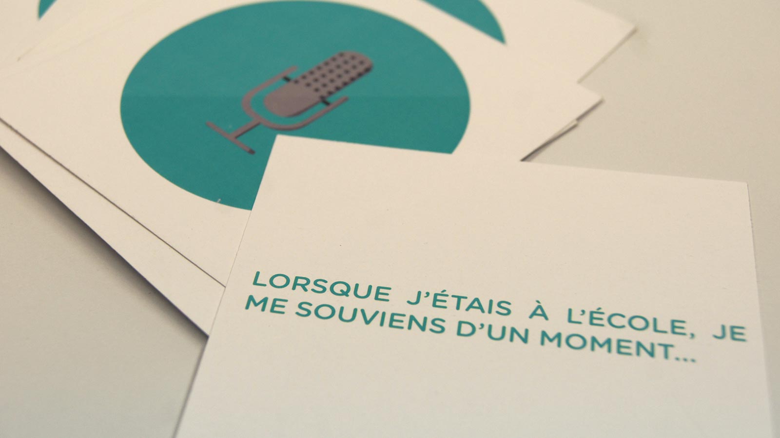 Assez grandes et carrées, elles servaient à la fin de la discussion, elles permettaient d’avoir un avis personnel, un souvenir de la personne. Les cartes étaient proposées en éventail et choisies au hasard, l’interrogé lisait le début de la phrase de sa carte pour la compléter. Cette outil nous permettait de mettre fin à la rencontre en obtenant un échange bref, synthétique et sincère.